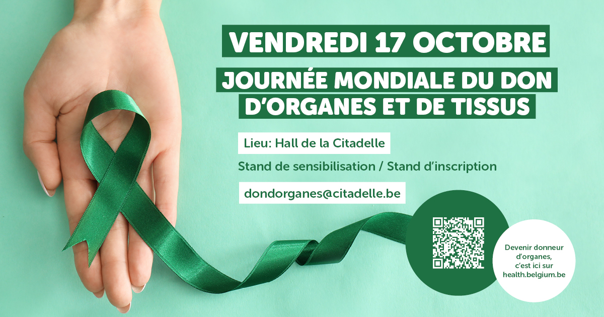 Le vendredi 17 octobre , rejoignez-nous dans le hall de la Citadelle à l'occasion de la Journée mondiale du don d'organes et de tissus .