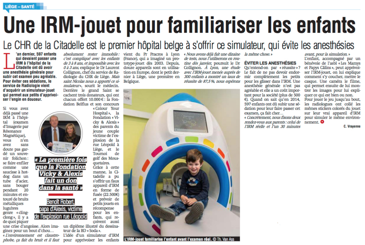 Article de Sudpresse (04/12/2015) - "Une IRM-jouet pour familiariser les enfants"