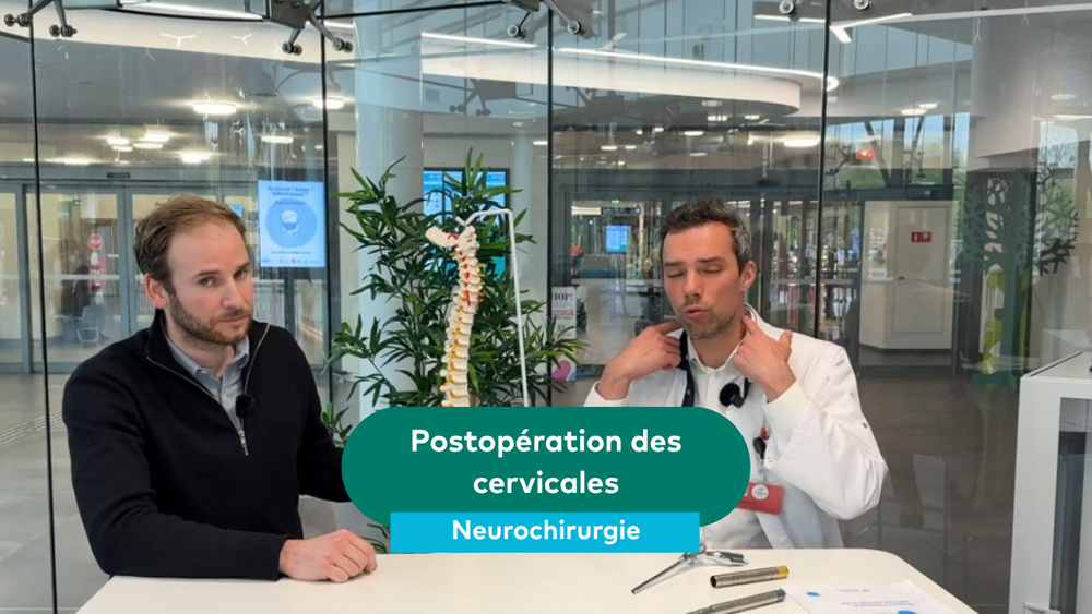 Partager FacebookTwitterLinkedInE-mail Accueil Centre de documentation Postopération des cervicales Documentation patients Vidéos Postopération des cervicales 10/07/2025 Services Service de Neurochirurgie Play