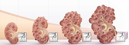 Figure 2 : Progression de la maladie rénale dans la polykystose hépato-rénale dominante de l’adulte.