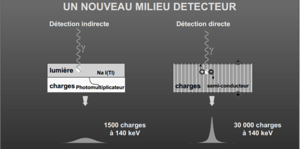 Deux avantages majeurs sont issus de cette conversion directe des gammas en électrons au sein du détecteur semi-conducteur :