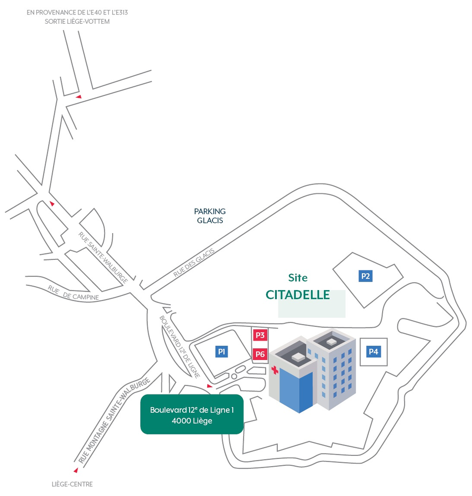 - Depuis l’autoroute : sur l’échangeur E40-E313, prendre la direction Liège Vottem et suivre les panneaux Citadelle.